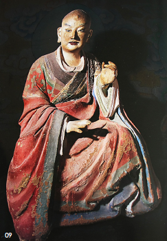 绵山造像皆为圆雕。大者过丈,小者尺余。形制随朝代更迭,风格缘时代嬗变,历史脉络清晰分明。造型无不栩栩如生,情态自然传神,性格相互迥异,手法各臻其妙;或写意,或写实,或简约,或华美,不少可称中华雕塑之精典。对于绵山造像的艺术分析,将在书中以另篇《晋中绵山彩塑神佛造像研究》述及;这里必说的一尊是宋代高僧智玄的包骨真身之像。那种睿智又平和、深远且宁静、茹苦含辛又悲天悯人的精神气质,令人心动。包骨真身是依真人之形,造真人之神。这尊高僧像应是此种特殊的佛教造像中的极品,也是绵山神佛之象征。